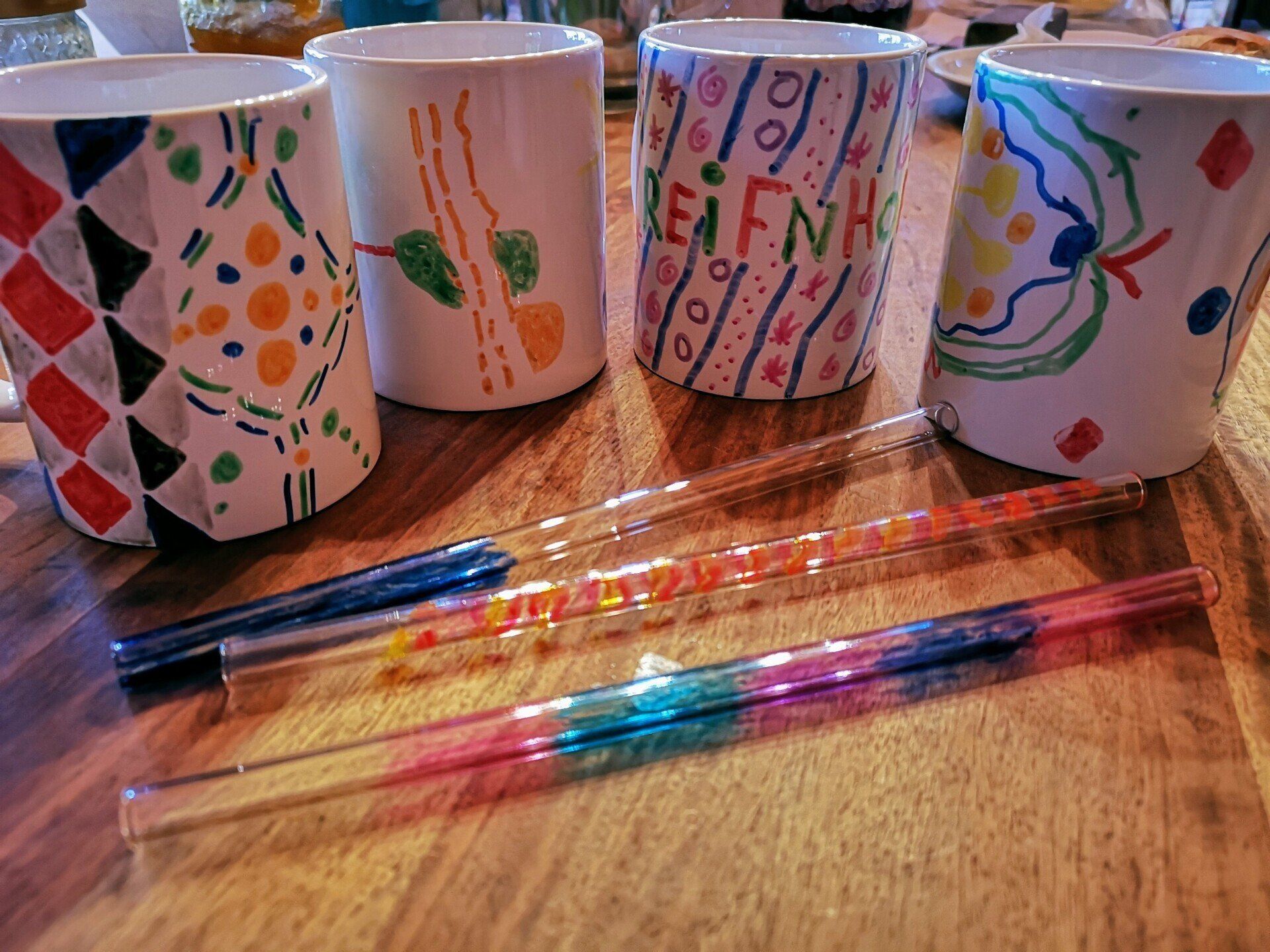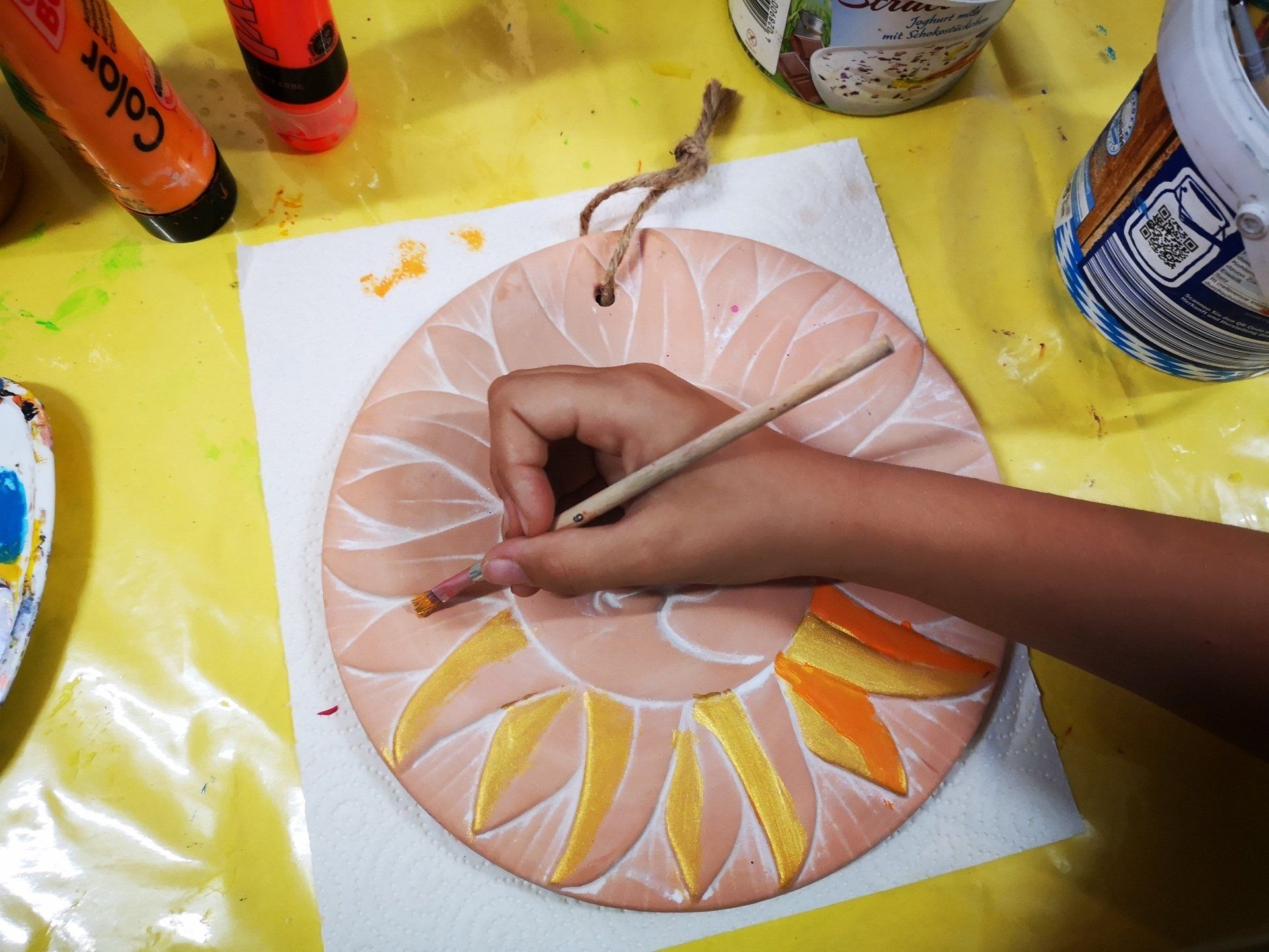 15 € pro Person und Kurseinheit / Material für eine Keramik, ein marmorierter Gegenstand, ein Sandzauberbild bzw. eine Leinwand inbegriffen.