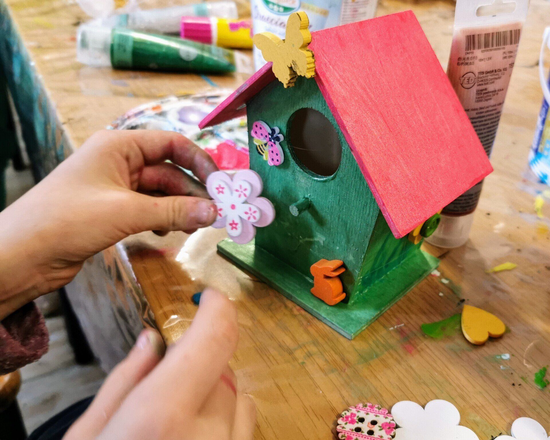 Beim kreativen Basteln gibt es jede Menge zu lernen, ganz spielerisch und mit viel Entdeckergeist. Hier lernen wir z. B. wie man Seifen herstellt oder auch Badekugeln formt. Wie man seinen eigenen hübschen Schlüsselanhänger oder Schmuck zusammenstellen kann. Wir basteln auch ganz nützliche Sachen wie z. B. Vogelhäuschen oder Insektenhotels. Wir arbeiten mit unterschiedlichen Materialien: mit Beton erstellen wir tolle Gartendeko, mit Holz machen wir schöne Kerzenständer oder zaubern Fotos auf das Holz.