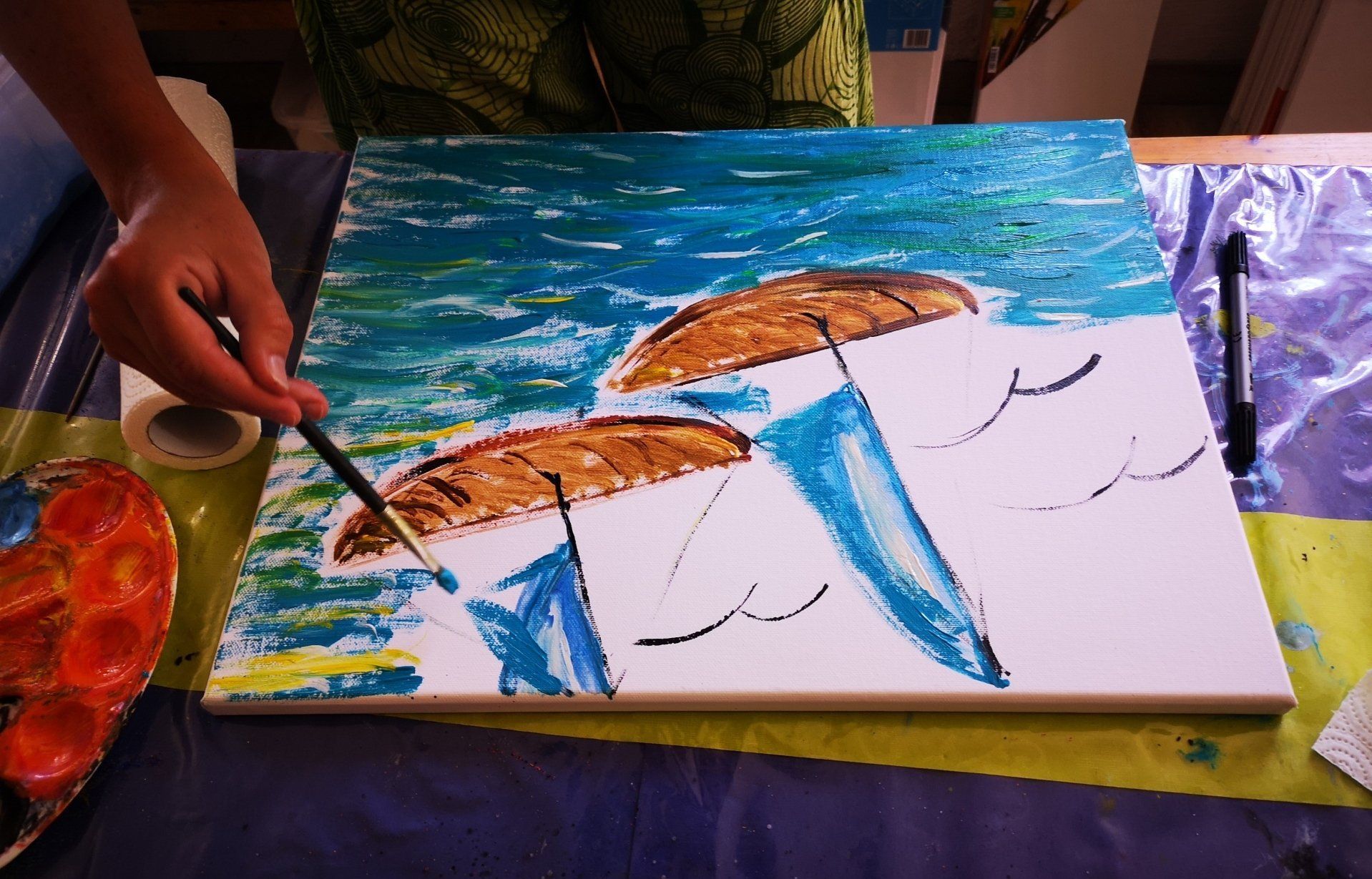 Beim kreativen Malen beschäftigen wir uns z. B. mit dem Erstellen von Bildern auf Leinwand aber auch mit dem Bemalen von Keramik oder Steinen und dem Malen mit Sand (Sandbilder gestalten). Wir erstellen Collagen mit Mix Media Technik und lernen unterschiedliches Material zu verwenden und toll zu gestalten. Beim "Kreativen Malen für Kinder" geht es vorrangig um das Malen und Gestalten mit Farben oder Sand und das Erstellen von Bildern auf und mit unterschiedlichen Materialien. Welches Material und Thema bei den Kursen zum Einsatz kommt ist nicht festgelegt und wird von Bäuerin Sybille als Überraschung bekannt gegeben.