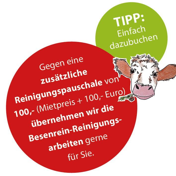 Reinigung: Die Wohnung muss besenrein hinterlassen werden. Mehr Infos dazu erhalten Sie in unserer Gästeinformation.
