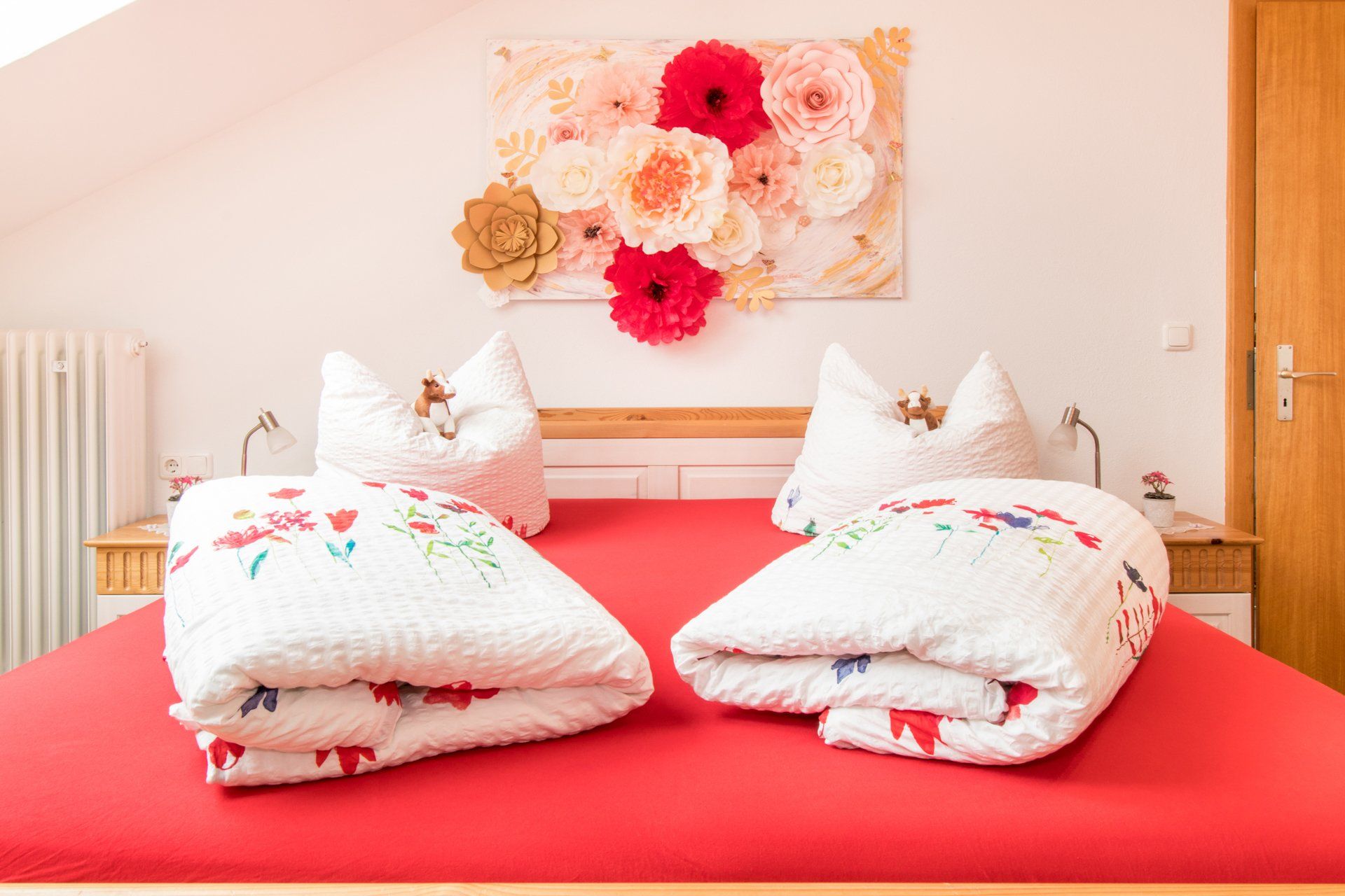 Unsere großzügige und gemütlich eingerichtete Ferienwohnung "Apfelbaum" bietet mit einer Größe von 75 m² ausreichend Platz für 4 Personen.
