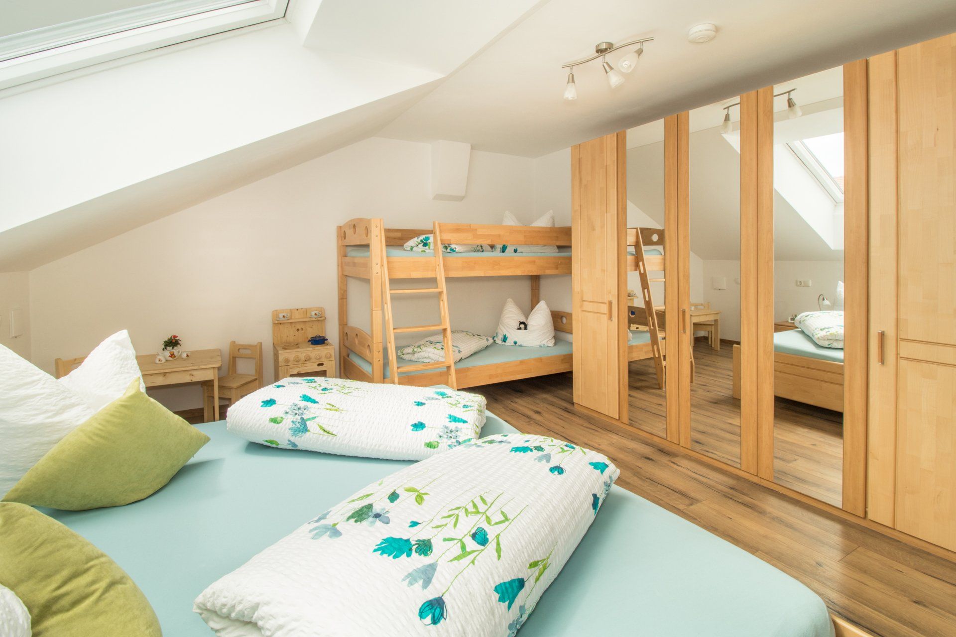 - 1 Schlafzimmer mit Doppelbett und hochwertigem Kinderhochbett für 2 Kinder