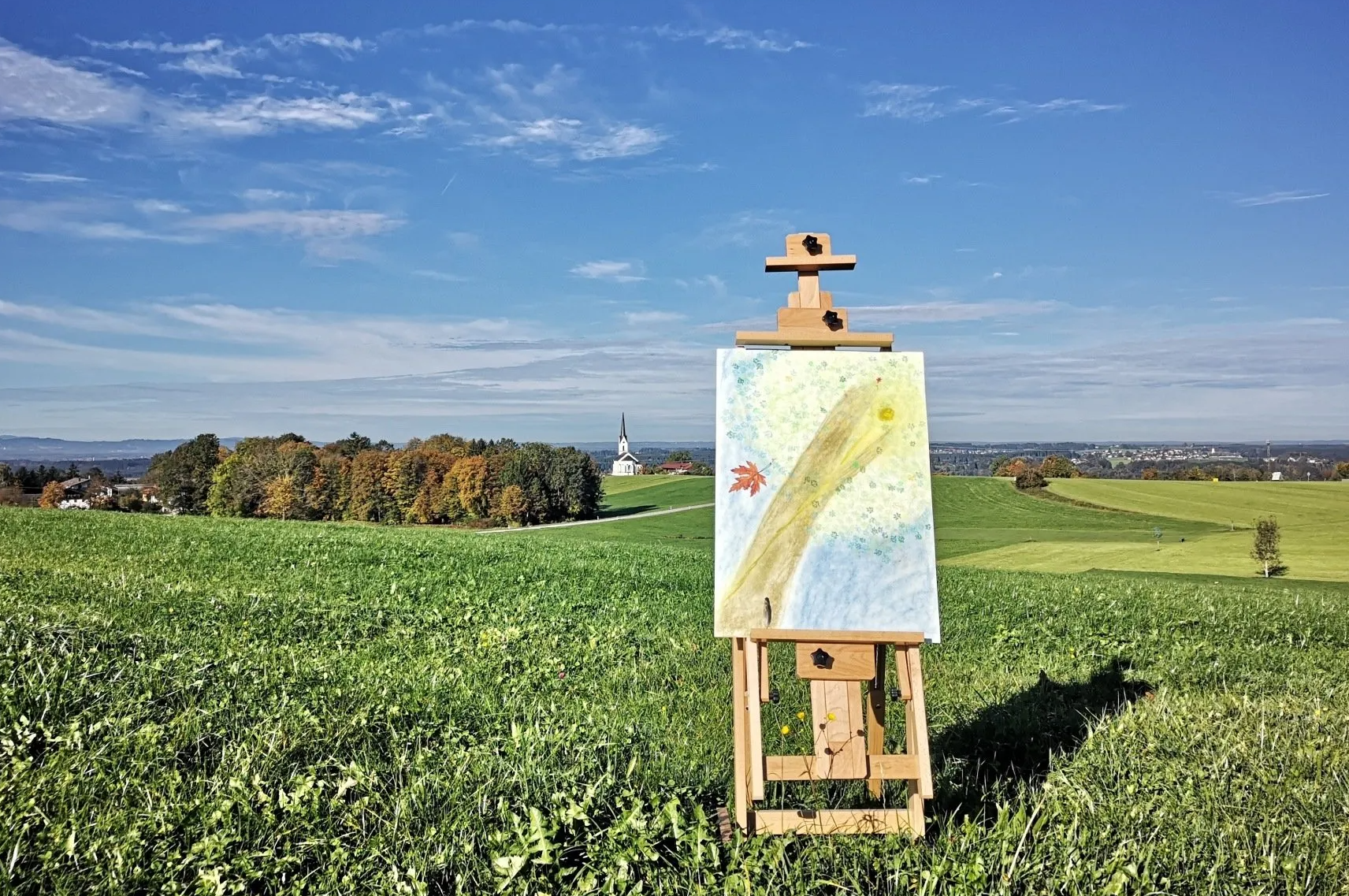 Wir packen Pinsel, Farbe und alles, was wir zum Malen brauchen, in unseren Bollerwagen und ziehen los zu einer unserer Wiesen um unseren Bauernhof. Dort steht bereits für jeden Teilnehmer eine eigene Staffelei bereit. Bäuerin Sybille leitet das kreative Malerlebnis und wird mit hilfreichen Tipps zur Seite stehen. In dieser entspannten und ruhigen Umgebung sind der Kreativität keine Grenzen gesetzt. Sie werden überrascht sein, was Ihr innerer Künstler hervorbringt. Was für ein Glück!