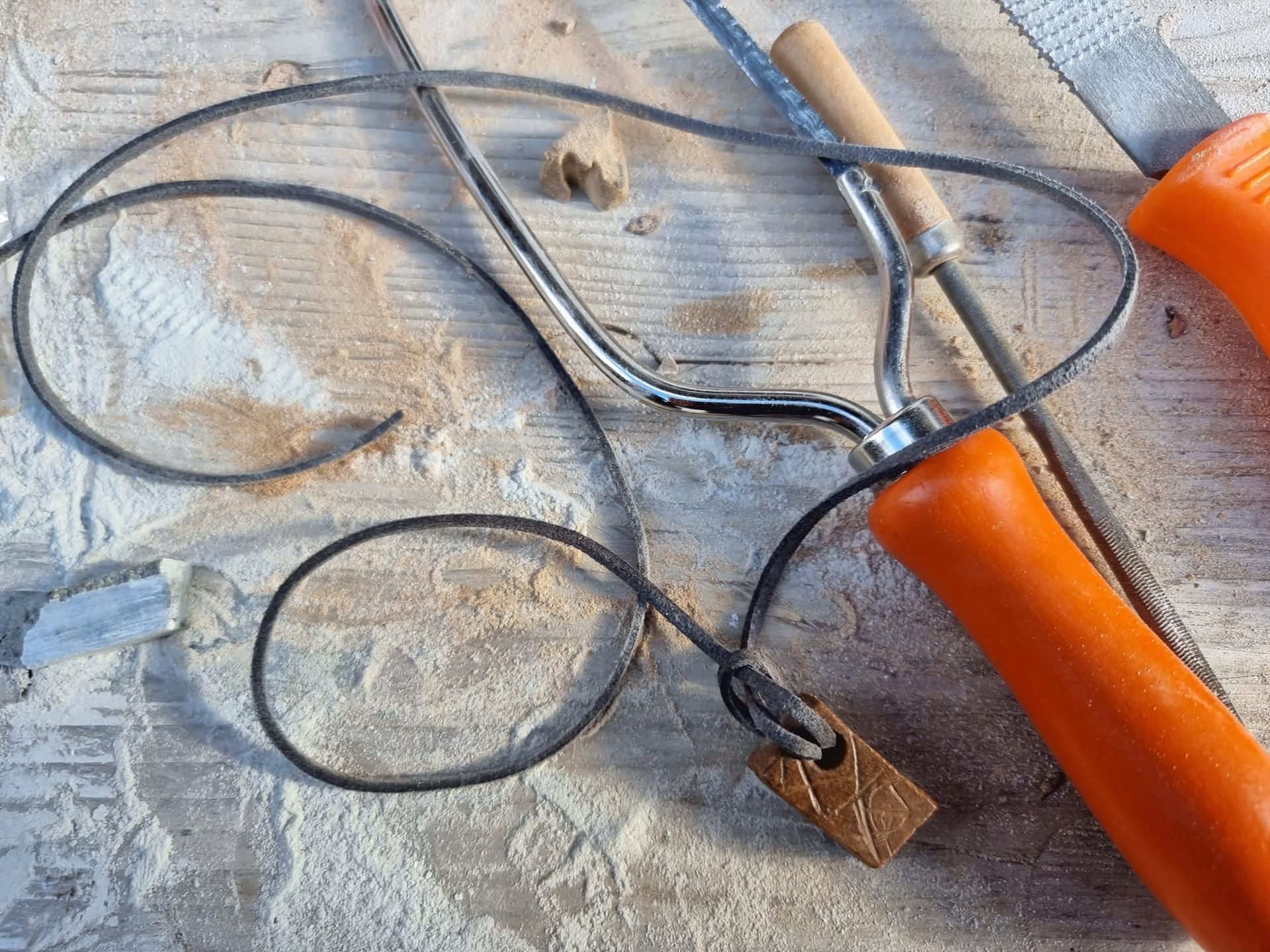 Wir feilen aus einem Speckstein-Rohling einen Kettenanhänger nach eigenem Entwurf und sehen, wie nach und nach ein individuelles Schmuckstück entsteht. Wir fühlen beim Bearbeiten die "Weichheit" von Speckstein. Diese "Weichheit" sorgt dafür, dass sich Speckstein leicht und fein verarbeiten lässt. Nach der Fertigstellung wird der Anhänger mit einem speziellen Öl versiegelt und jeder erhält ein Lederband zu seinem Schmuckstück.