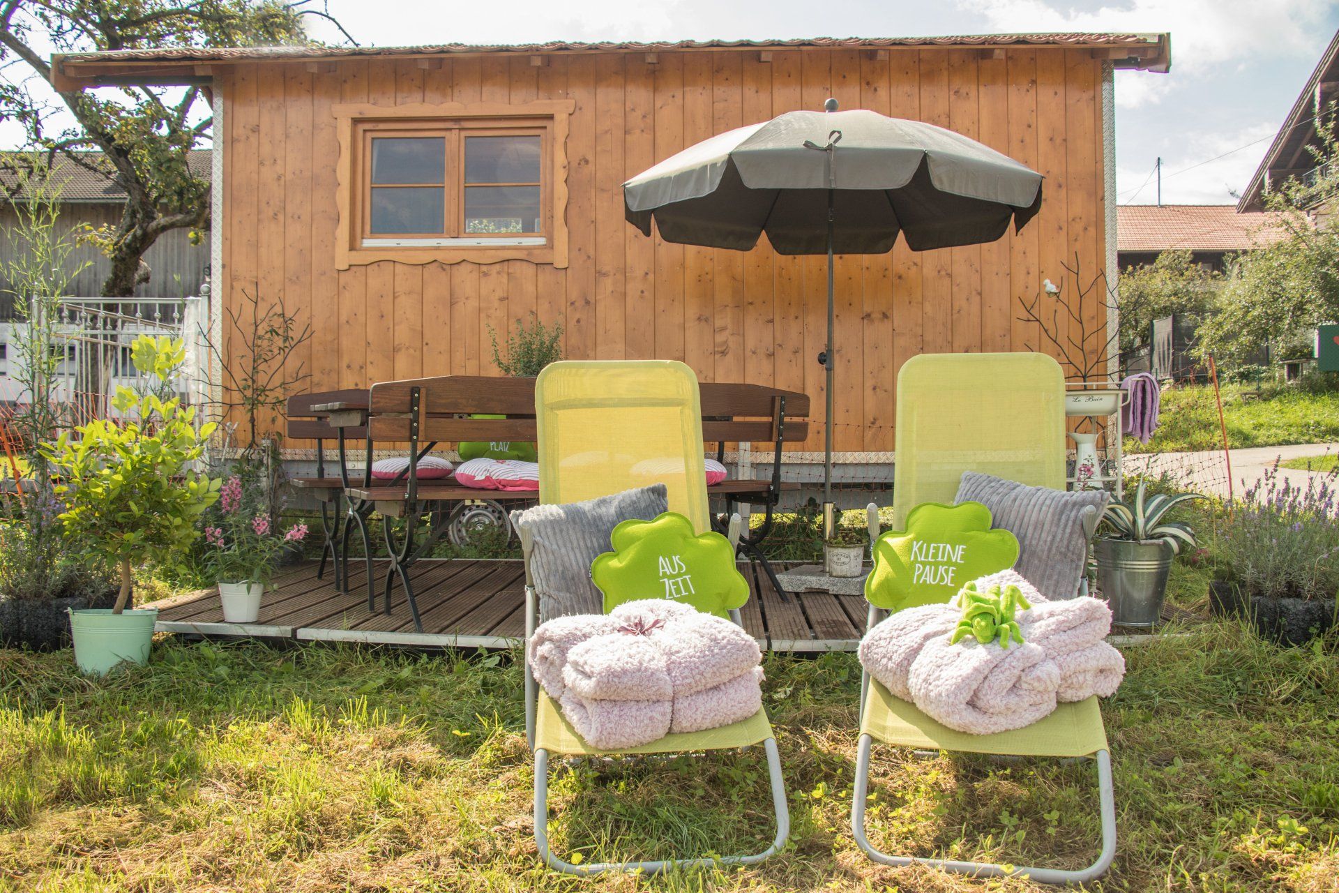 (Bettwäsche kann auch optional dazu gebucht werden, siehe unten) - Kleiner Tisch mit Bänken für bis zu 4 Personen