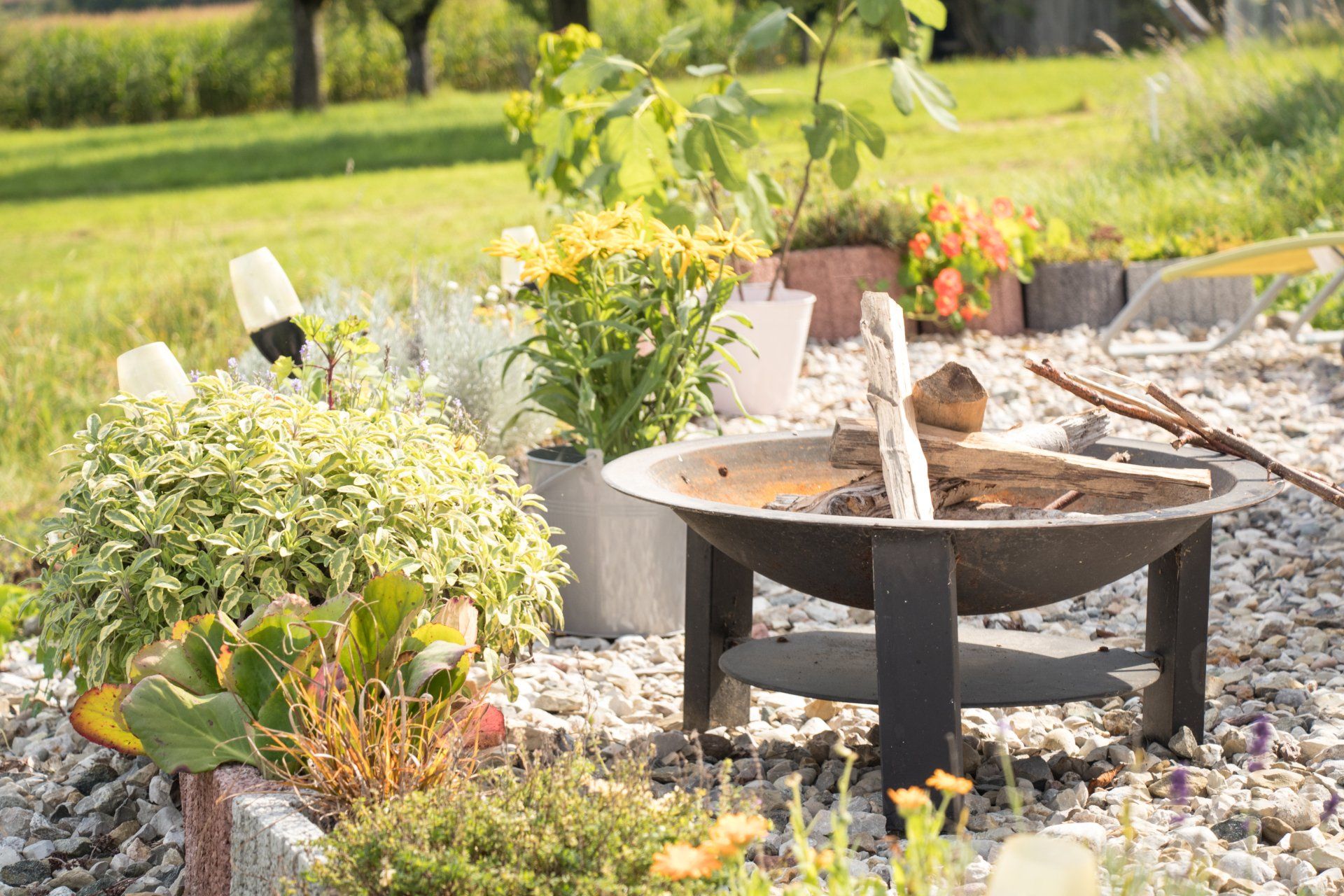 - Liegestühle und Gartenmöbel auf der Wiese